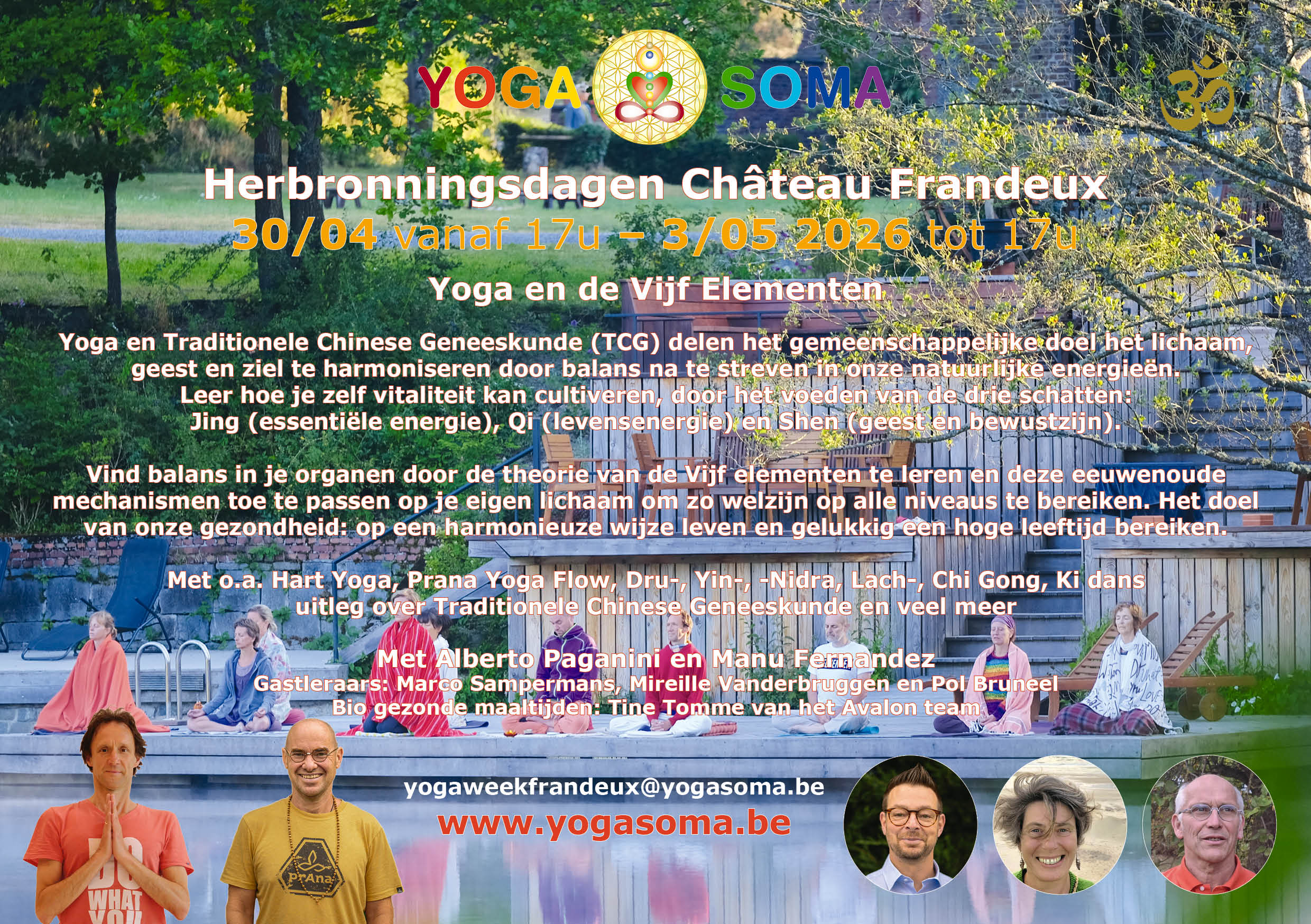 Pol: Yoga, Chi Gong – Chi hartverbindend bewegen – Chen hemel en aardeverbinding – vijf elementen Flow – Dru yoga groet aan de vier windrichtingen (+ individuele massages)