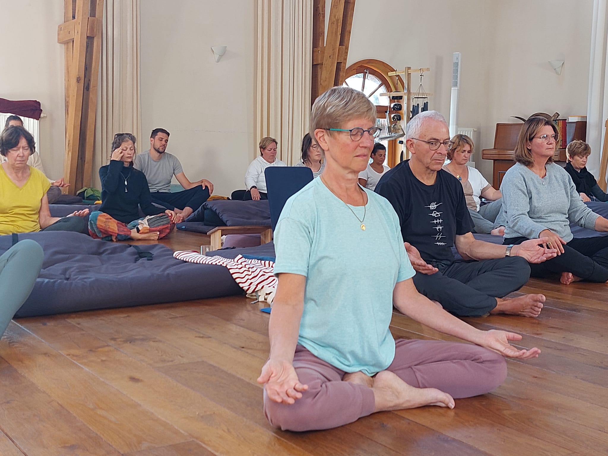 De middelen die we gebruiken zijn yoga, klankmeditatie, mantra, meditatie, dans, massage, sauna, veel natuur, puur en zuiverende voeding, activeren van bewustzijn.